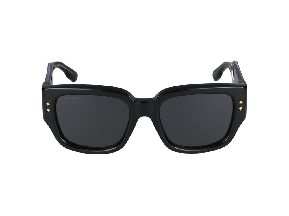 Make a bold statement with these Gucci GG1261S sunglasses in classic black with grey lenses. These square-framed sunglasses feature the iconic Gucci design with subtle gold-tone stud detailing on the temples, adding a touch of luxury to any outfit.