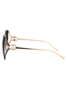 The elegant gold-tone metal frames are adorned with signature Gucci detailing on the temples, adding a touch of designer glamour to any ensemble. Whether you're lounging poolside, exploring the city, or attending an outdoor event, these versatile sunglasses effortlessly complement both casual and elevated looks.