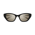 Elevate your eyewear collection with these stunning Gucci GG1968S sunglasses in a sophisticated black and gold colorway. The iconic cat-eye silhouette features sleek black frames beautifully accented with elegant gold and pearl-inspired temple details, creating a luxurious and feminine aesthetic.