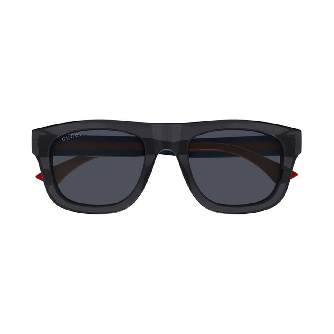 Elevate your eyewear collection with these sophisticated Gucci GG1991S sunglasses in a striking grey-blue colorway. These square-framed sunglasses feature bold, contemporary styling with distinctive red and blue temple accents that showcase Gucci's iconic design aesthetic.