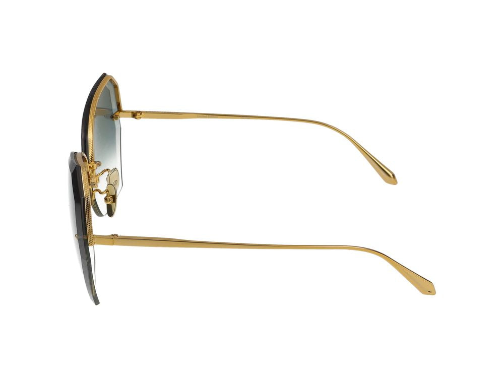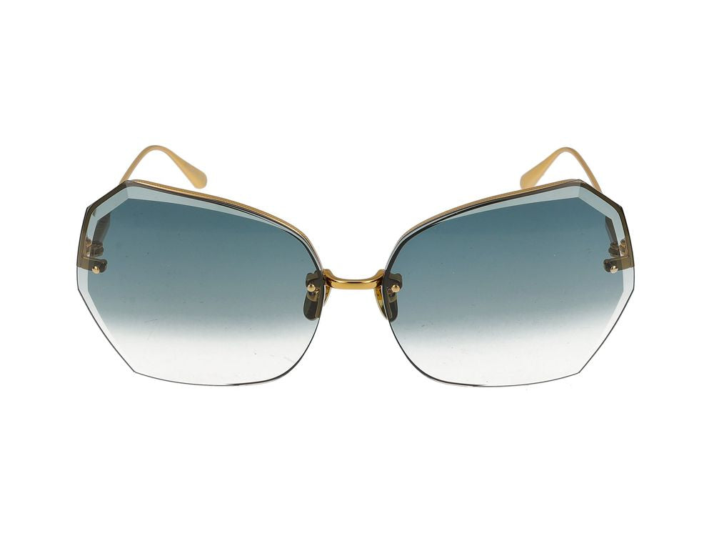 Elevate your eyewear collection with these stunning Linda Farrow LFL1546 Lila sunglasses in luxurious yellow gold and light gold tones. These geometric-shaped frames feature beautiful gradient lenses that transition from blue to clear, offering both style and UV protection.