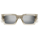 Elevate your eyewear collection with these stunning Saint Laurent SL 572 sunglasses in a sophisticated translucent beige frame with silver accents.