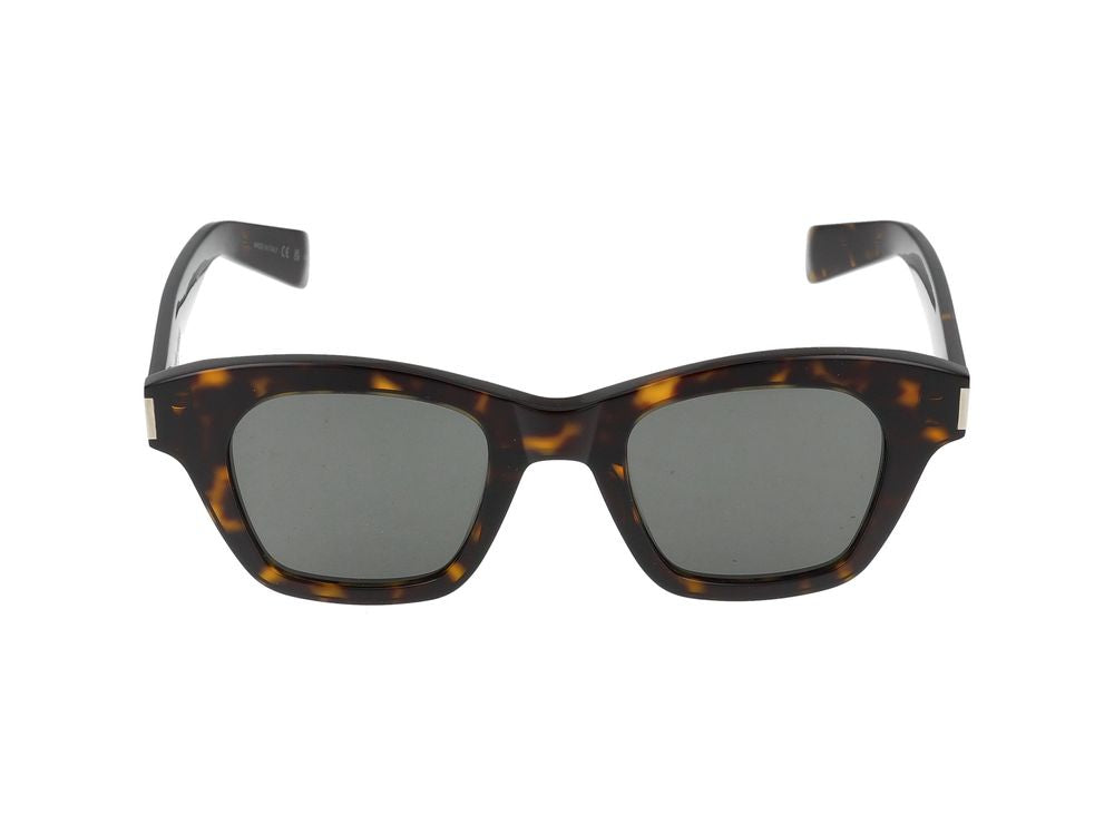 Elevate your everyday style with these sophisticated Saint Laurent SL 592 sunglasses in classic havana tortoiseshell. The timeless square frame silhouette features grey lenses that provide both UV protection and effortless elegance.