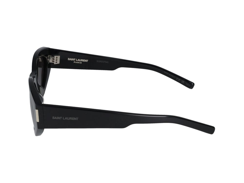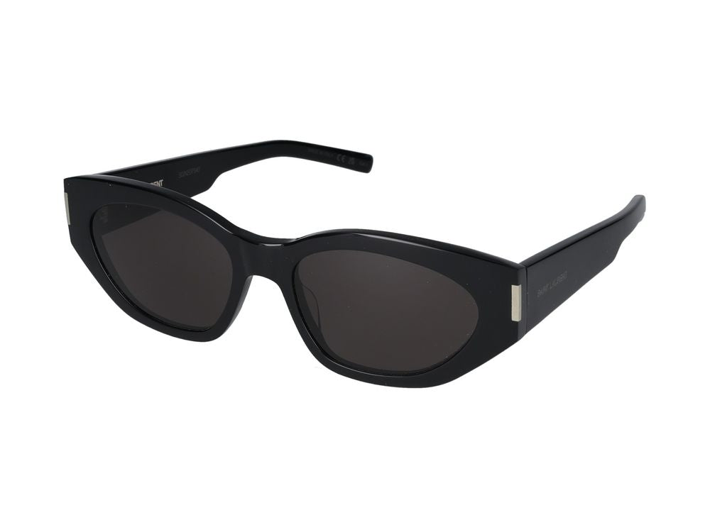Saint Laurent SL 638 Sunglasses in sleek black bring effortless sophistication to any look. These fashion-forward sunglasses feature a modern oval silhouette with subtle cat-eye influences, crafted in glossy black acetate for a luxurious finish.