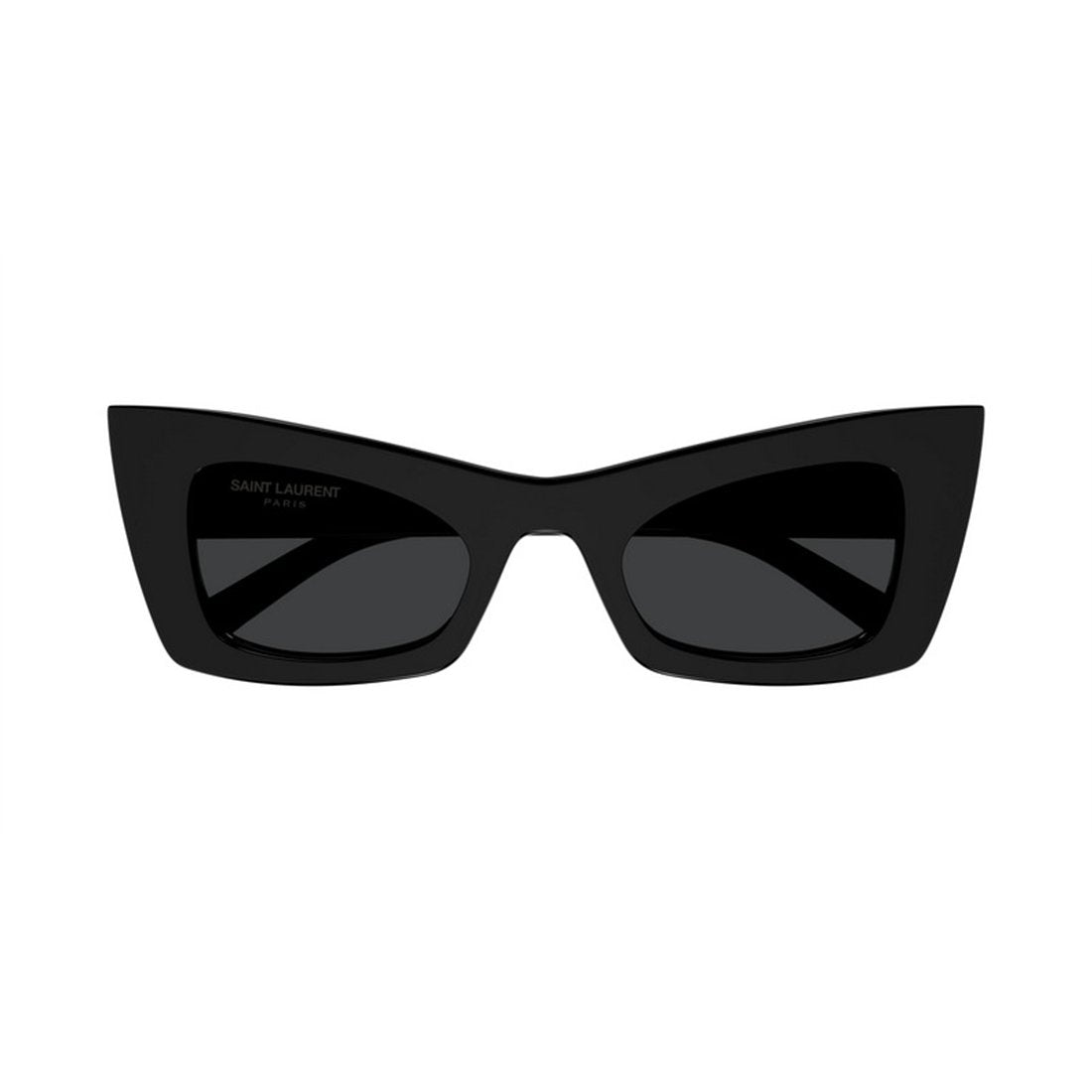 Make a bold statement with these striking Saint Laurent SL 702 sunglasses in classic black. The distinctive cat-eye silhouette features angular lines and a structured frame that exudes modern sophistication and timeless elegance.