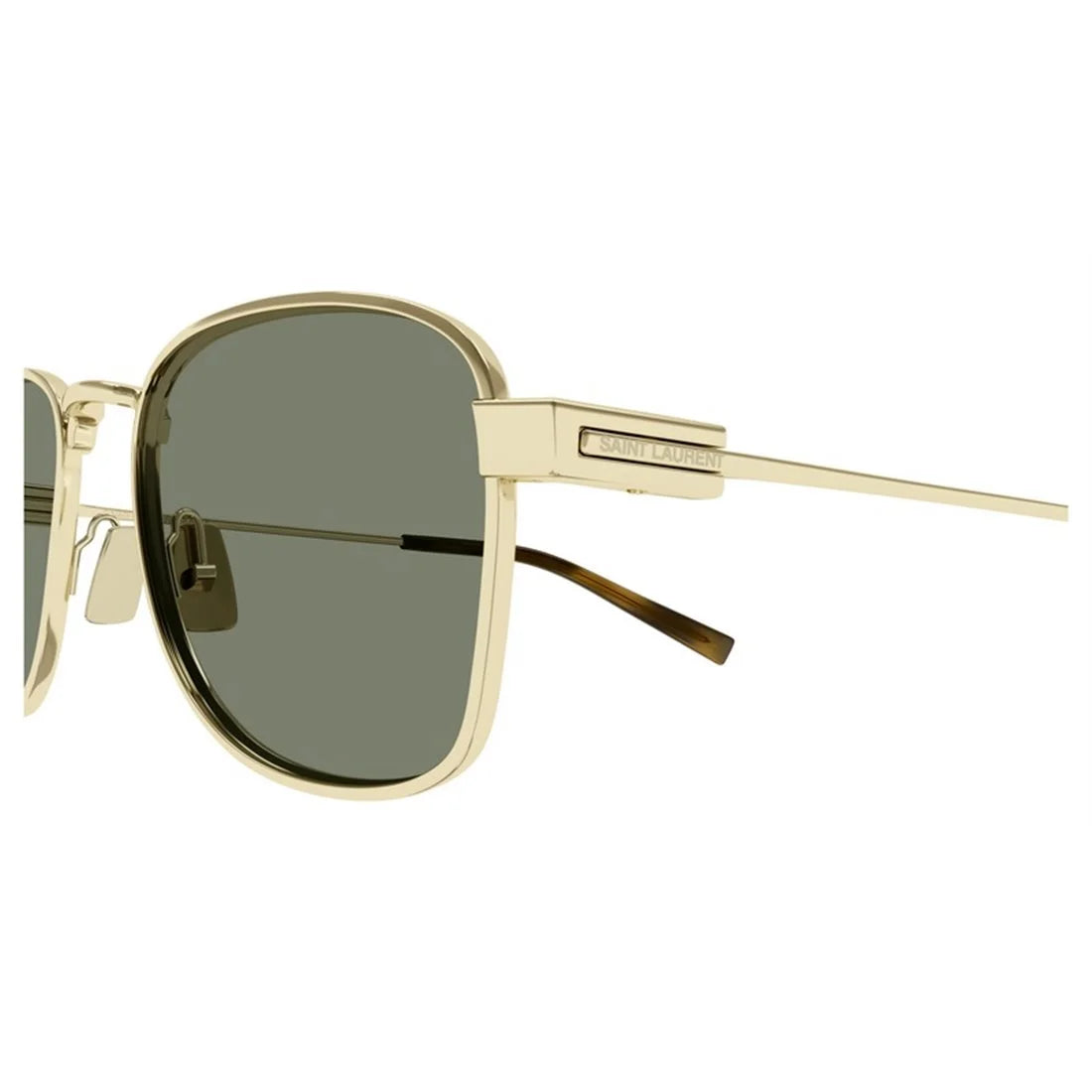 Elevate your eyewear collection with the Saint Laurent SL 741 sunglasses in luxurious gold with green lenses. These sophisticated frames feature a modern square silhouette with sleek metal construction that exudes timeless elegance and contemporary style.