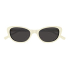Elevate your eyewear collection with these stunning Saint Laurent SL 822 sunglasses in a chic ivory colorway. The sophisticated cat-eye silhouette features ivory frames with dark lenses, creating a timeless and elegant aesthetic that effortlessly complements any outfit.