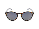 The timeless round frame silhouette features rich brown tortoiseshell patterning paired with sleek transparent temples, creating a perfect balance of vintage charm and modern elegance. Dark gray lenses provide excellent UV protection while maintaining a chic, understated aesthetic.