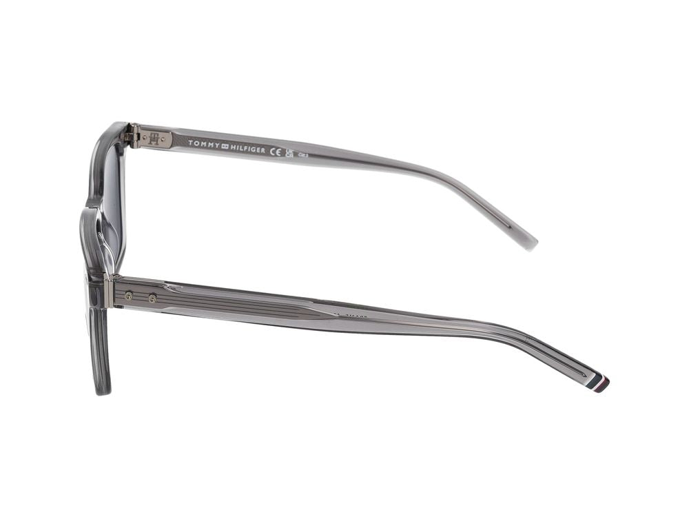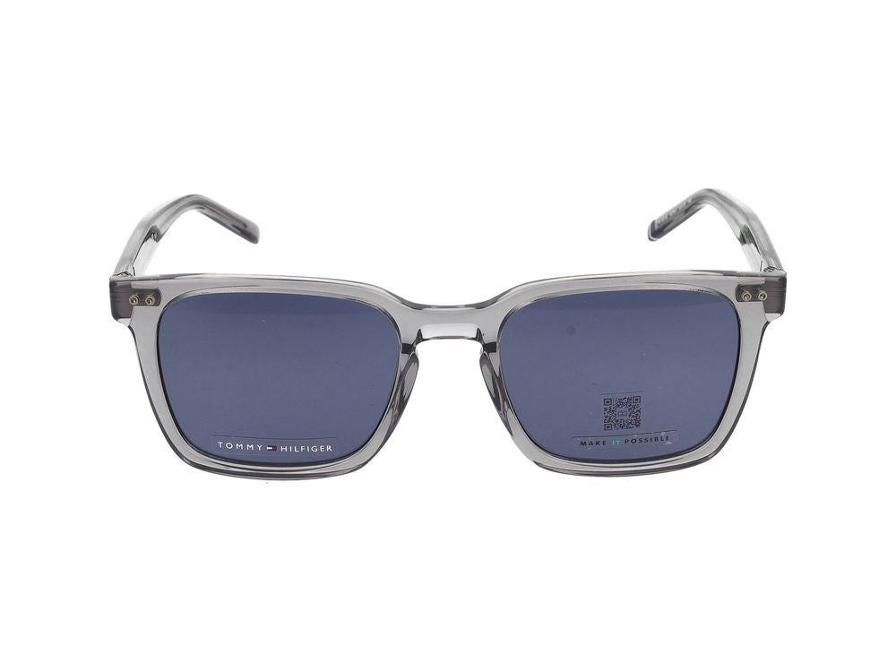 Elevate your everyday style with these sophisticated Tommy Hilfiger TH 1971/S sunglasses in a sleek grey transparent frame. These square-shaped sunglasses feature premium construction and dark blue lenses that provide excellent UV protection while maintaining a modern, refined aesthetic.