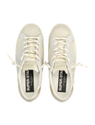 Elevate your casual style with the Golden Goose Super Star Sneakers, featuring a luxurious suede upper in a versatile cream colorway. These iconic low-top sneakers showcase the brand's signature star logo and distressed finish, delivering that coveted lived-in aesthetic that Golden Goose is renowned for.