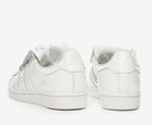 SUPERSTAR FRINGE SNEAKERS IN CLOUD WHITE/OFF WHITE/GOLD METALLIC WITH FEATURES LIKE LOGO AND RUBBER SOLE.