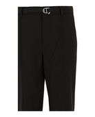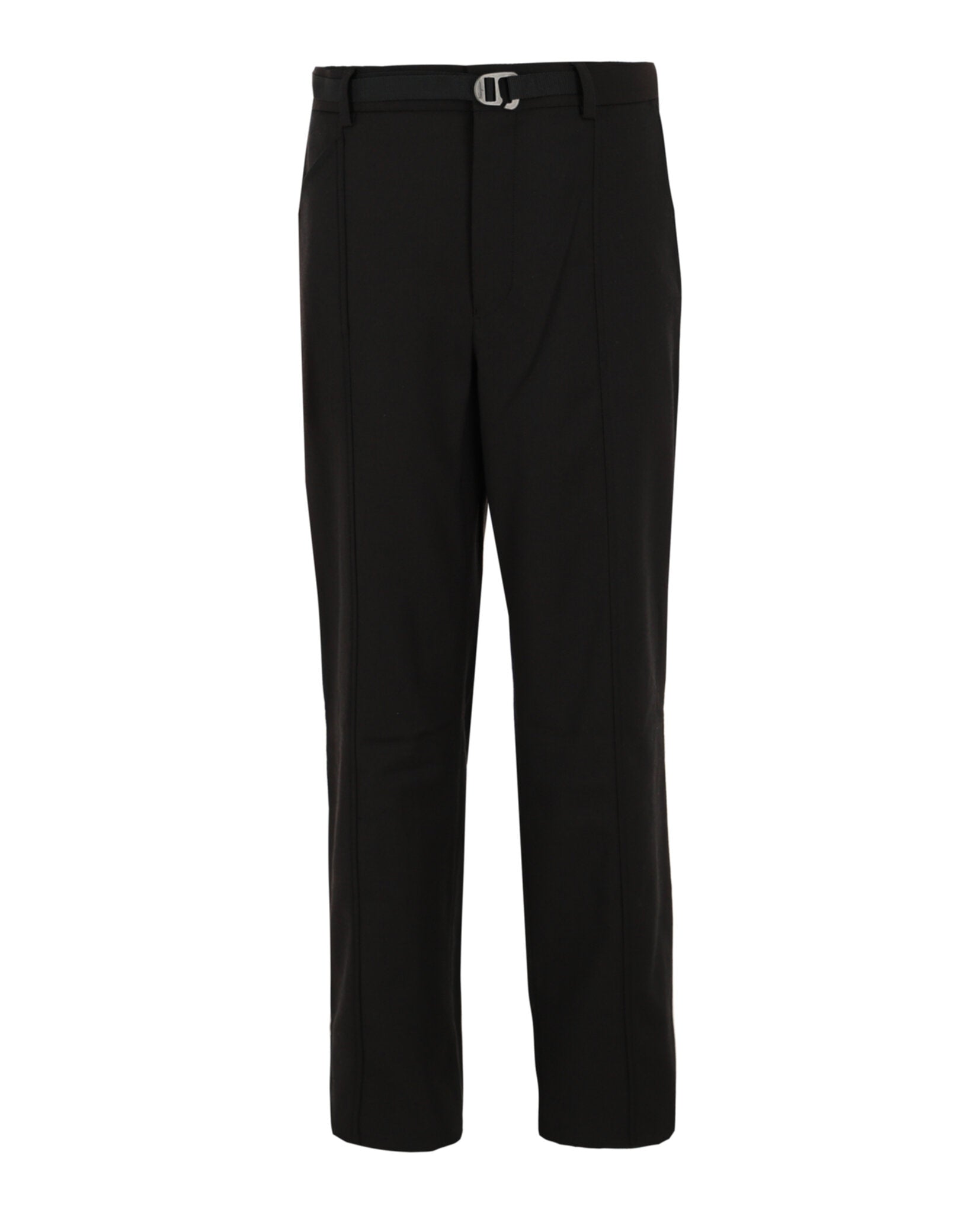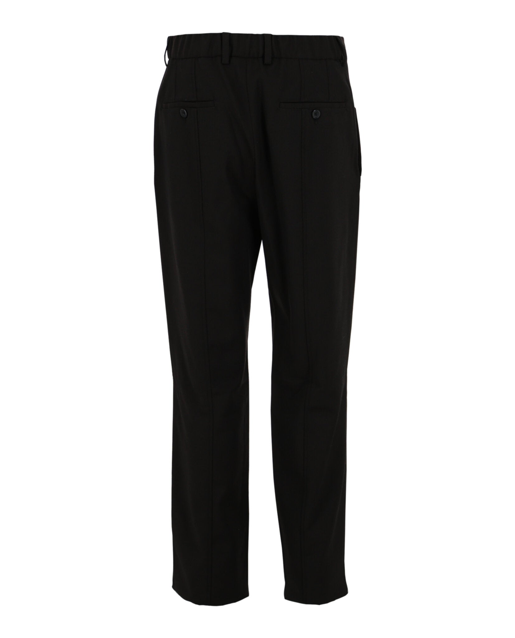 - Attached belt with swan-hook buckle and embroidery; Partial elasticized waistband; Unhemmed; Two slash pockets and two back welt pockets; Antiqued Silver-Tone buckle
