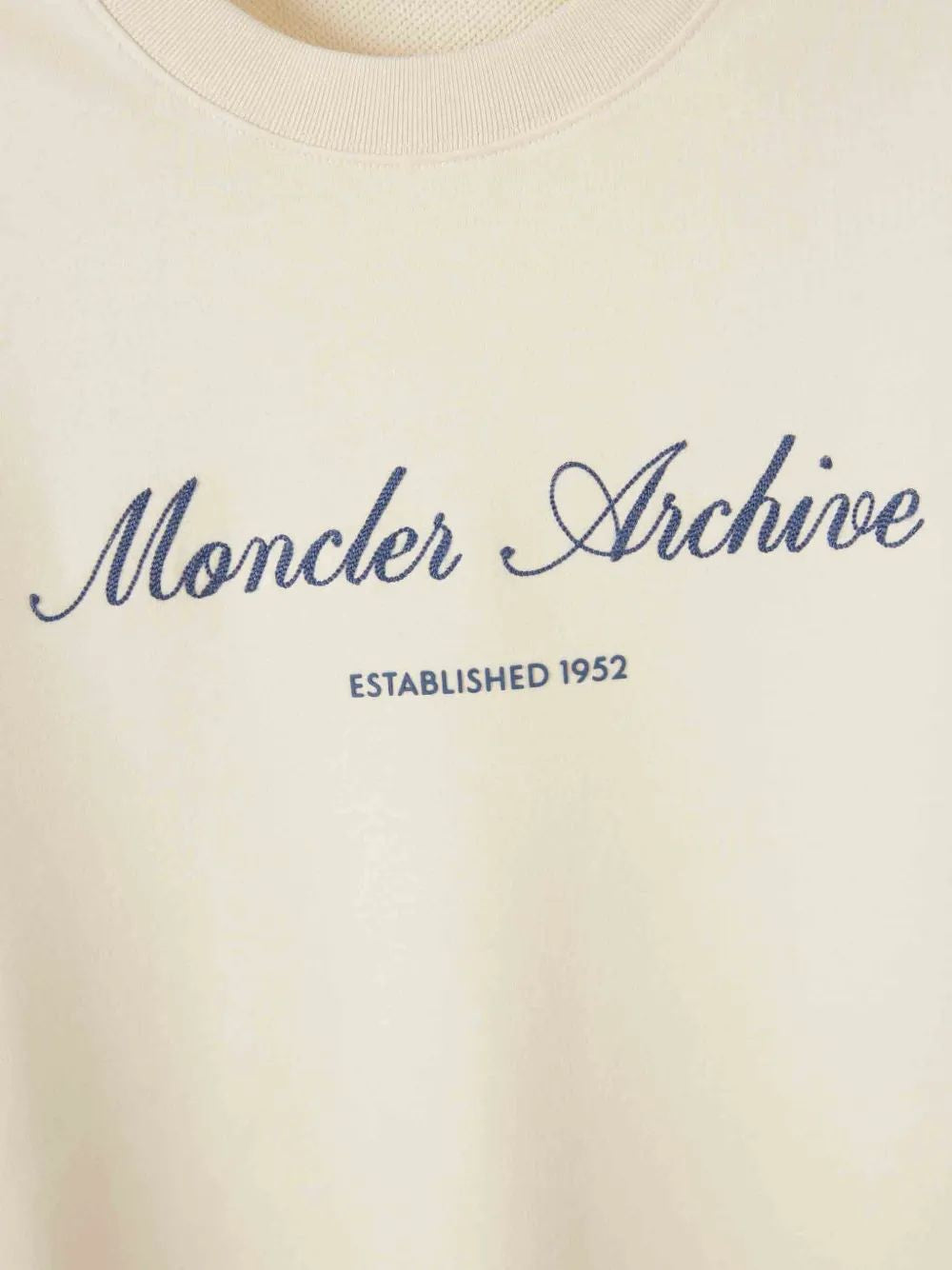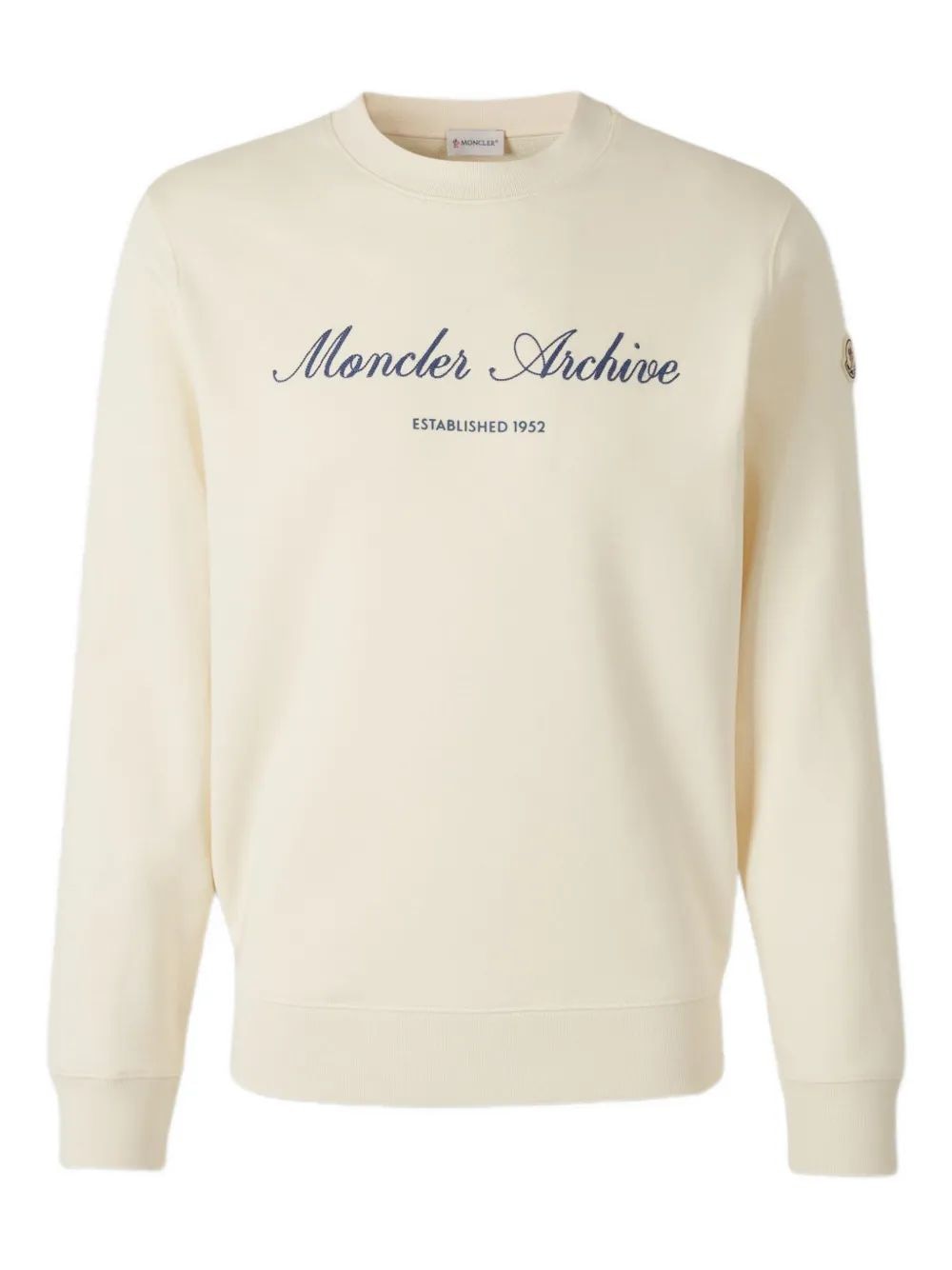 Elevate your casual wardrobe with this refined sweatshirt from Moncler. Crafted in a luxurious cream tone, this pullover features elegant "Moncler Archive" script lettering with "Established 1952" detailing, celebrating the brand's rich heritage.