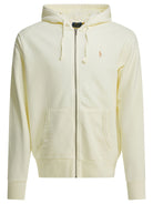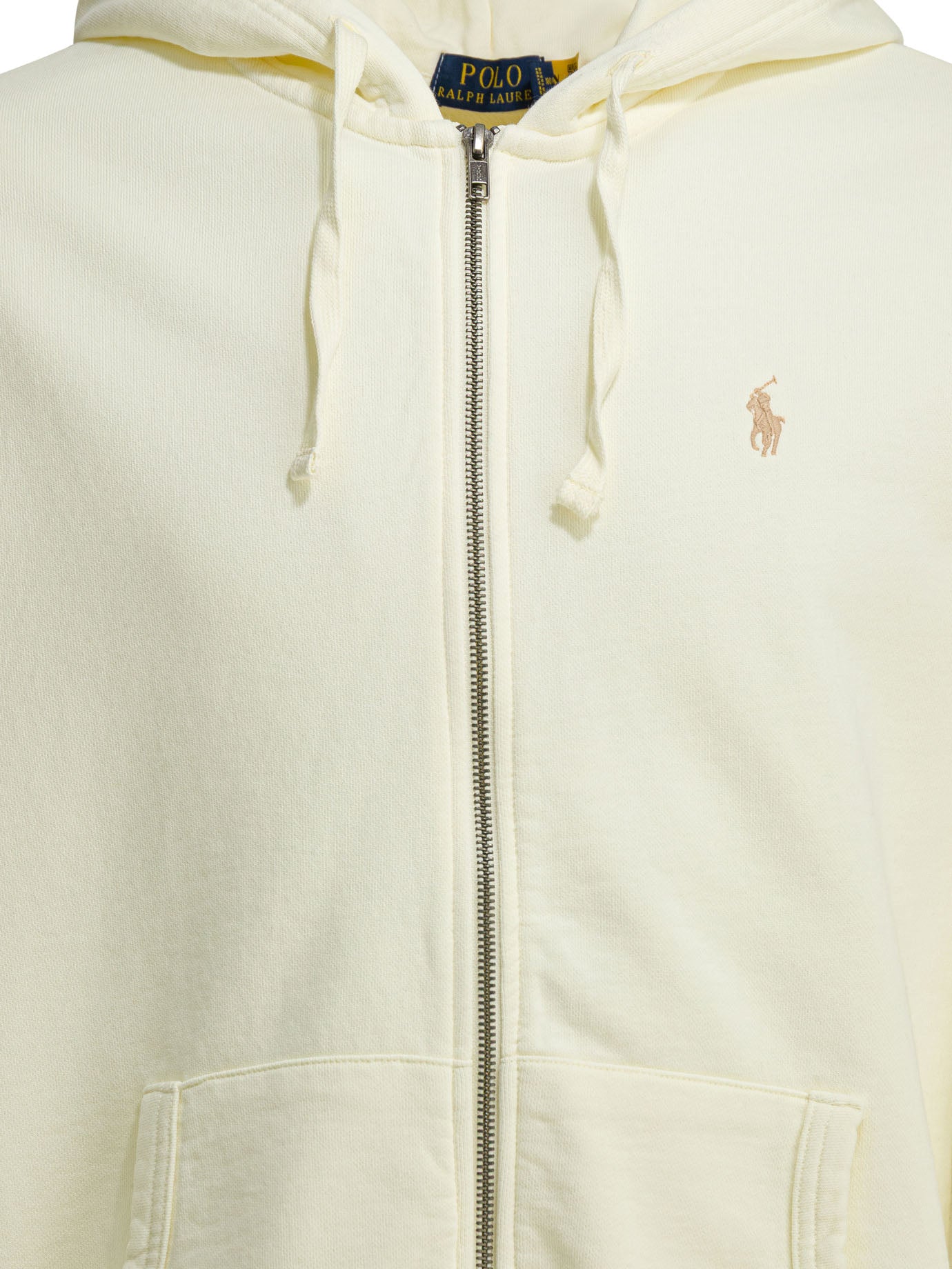 Elevate your casual wardrobe with this classic zip-up hoodie from Polo Ralph Lauren. Crafted in a soft, comfortable fabric in a versatile cream tone, this essential piece features a full front zipper, adjustable drawstring hood, and convenient kangaroo pockets.