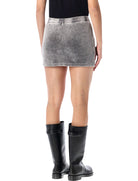 T BY ALEXANDER WANG WASHED GREY MID-RISE MINI SKORT WITH EMBOSSED LOGO