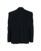 JACKET IN BLACK WOOL TWILL AT THE FRONT AND JERSEY AT THE BACK. FEATURING CLASSIC LAPELS, LONG SLEEVES, FRONT FLAP POCKETS, PADDED SHOULDERS, AND A PARTIALLY LINED INTERIOR. CLASSIC FIT.