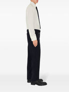 HOOK, BUTTON AND ZIP CLOSURE SIDE SLIP POCKETS, WELT POCKET WITH BUTTON ON THE BACK EQUESTRIAN KNIGHT DESIGN LABEL ON BELT LOOP UNFINISHED EDGES FOR POSSIBLE ALTERATIONS SLIM FIT THE MODEL WEARS SIZE 48 72% WOOL, 28% MOHAIR MADE IN ITALY