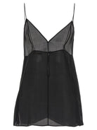 Elevate your evening wardrobe with the 'Talsie' top from Khaite, a stunning piece crafted from semi-transparent pure silk organza that exudes effortless sophistication. This exquisite top features a flattering front V-neck, ultra-thin straps, and elegant pintuck detailing on both the front and back, creating a refined silhouette that's both delicate and striking.