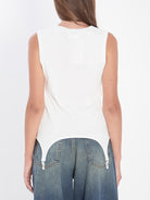 Tank top in white cotton. Features ribbed texture, logo tag, and garter hooks. Slim fit.