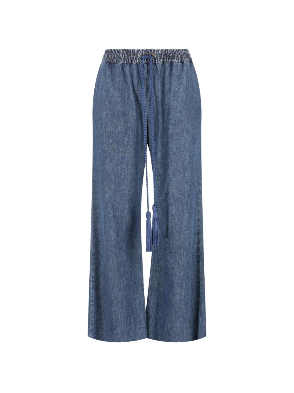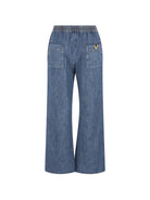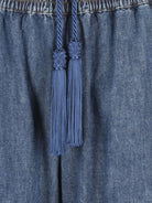 Elevate your denim collection with these stunning Tassel-Detail Wide-Leg Jeans from Valentino Garavani. Crafted from premium cotton with an elasticated waistband for ultimate comfort, these jeans feature eye-catching white tassel details running down the sides that add a playful, luxurious touch to the classic wide-leg silhouette.