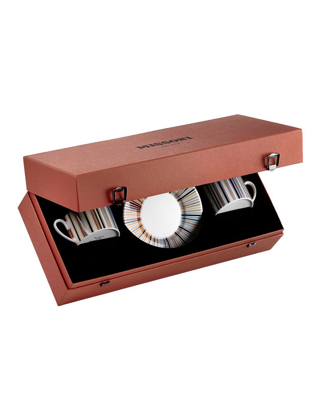 Tea Cup & Saucer NASTRI Set of 2 in Luxury Box Multicolor diam. 3.3", H 2.3", cap. 7.5 oz, Saucer dim. 6"