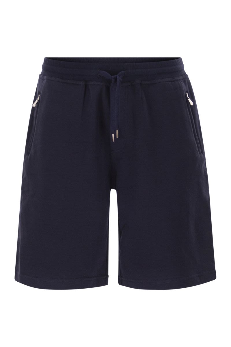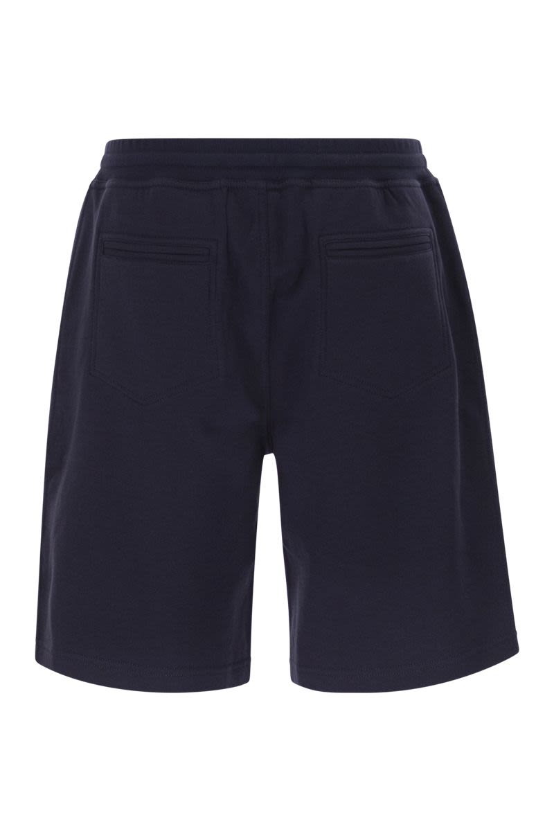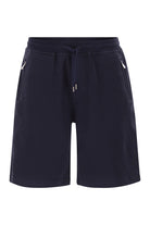 HIGH-QUALITY MATERIALS ENRICH THE SPORTY STYLE OF THE TRAVELWEAR LINE, DEDICATED TO MOMENTS OF RELAXATION AND LEISURE. THE BERMUDA SHORTS WITH ELASTICATED WAISTBAND AND DRAWSTRING HAVE A SOFT AND RELAXED SILHOUETTE, MADE FROM TECHNO COTTON FLEECE AND ENRICHED BY THE CHARACTERISTIC CONTRAST OF TEXTURES: SMOOTH AND COMPACT ON THE OUTSIDE AND SOFT ON THE SKIN ON THE INSIDE. THE FIT, COMPLETED BY ZIPPED POCKETS ON THE FRONT, OFFERS REGULAR VOLUMES, MAKING THE GARMENT COMFORTABLE AND VERSATILE. TECHNO COTTON FLEECE IS A SOFT AND LIGHTWEIGHT FABRIC: THE TEXTURE IS SMOOTH AND COMPACT ON THE OUTSIDE, WHILE THE INSIDE HAS A HONEYCOMB STRUCTURE THAT HELPS TO MAKE IT LIGHTWEIGHT TO WEAR. A SMALL PERCENTAGE OF SYNTHETIC FIBRE ENHANCES COMFORT. - RIBBED WAISTBAND WITH DRAWSTRING - FRONT ZIP POCKETS - BACK PATCH POCKETS WITH BUTTONS - PLAIN HEM DESIGNER ID: MW8633242G C6134