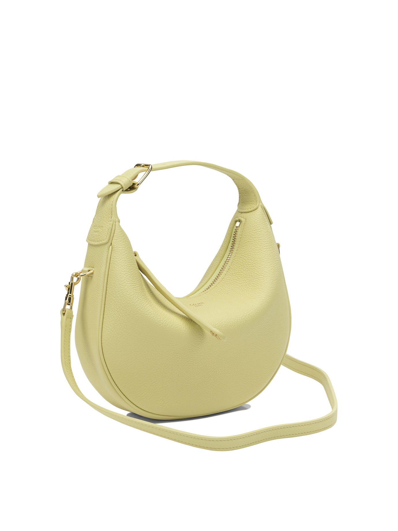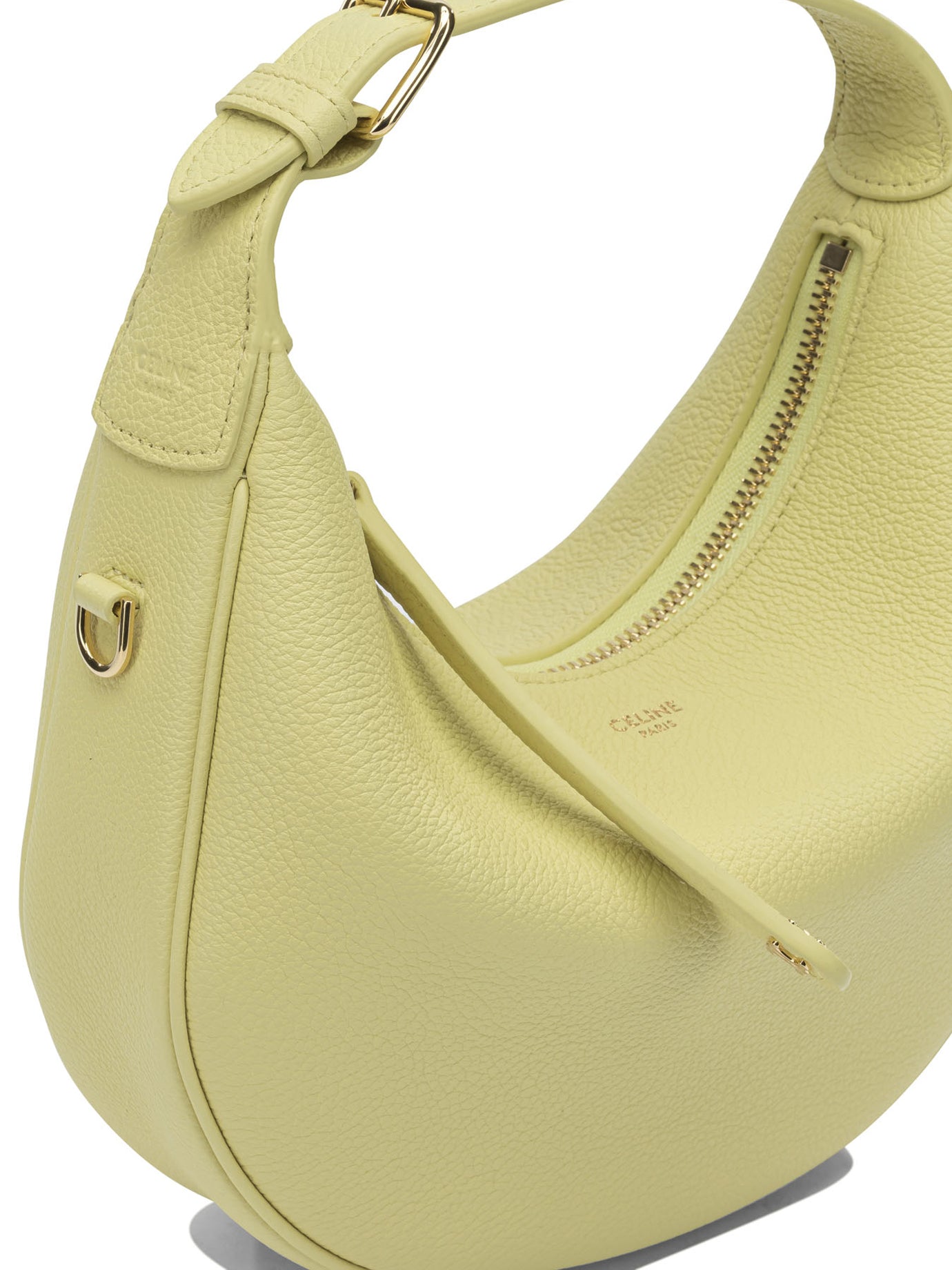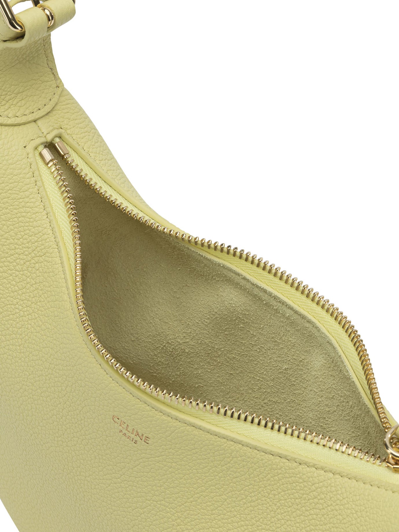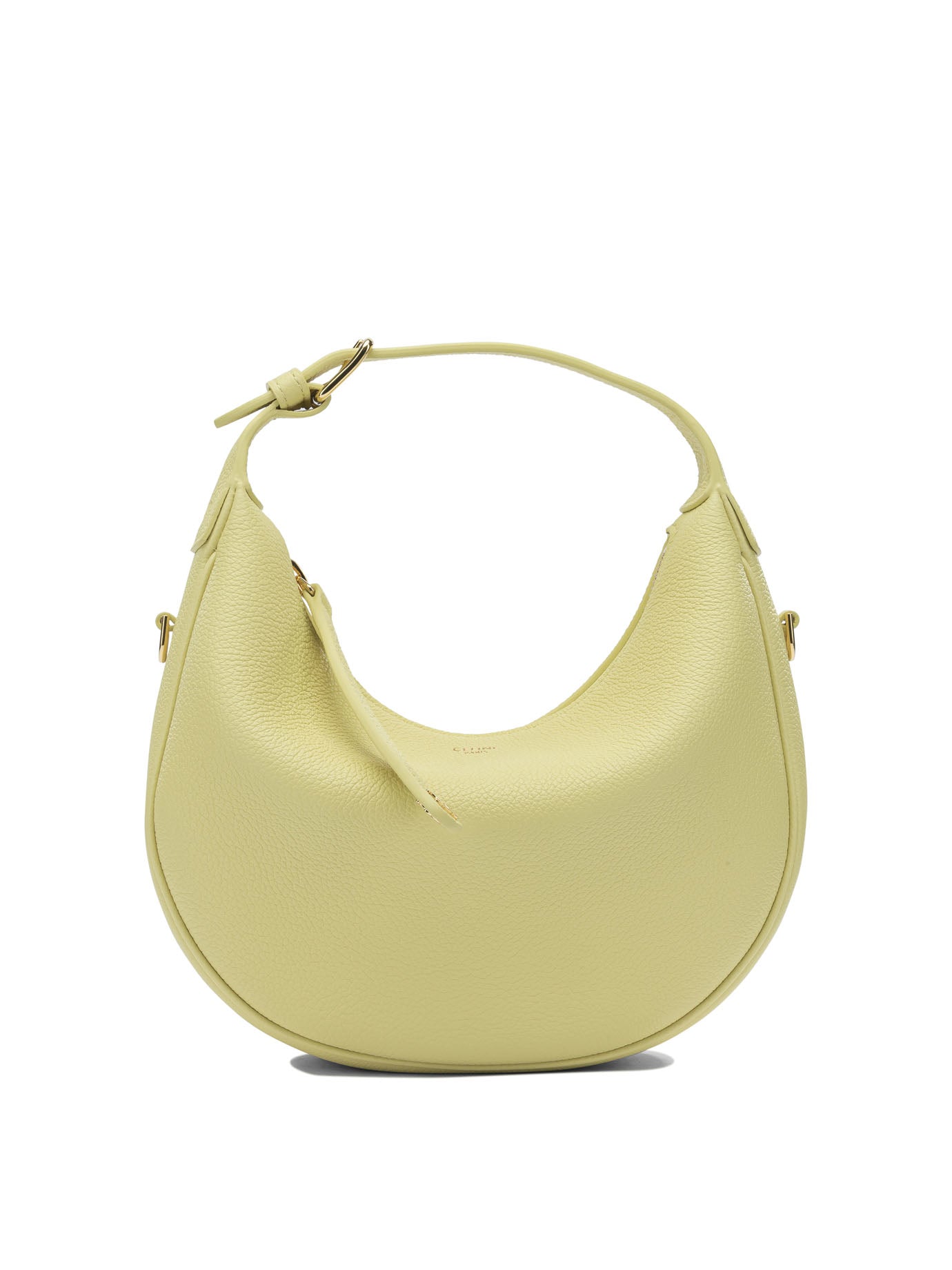 Elevate your everyday style with the Celine Teen LuLu small shoulder bag in a fresh, luminous pale yellow hue. This iconic crescent-shaped silhouette features luxurious textured leather and a distinctive knotted handle detail that exemplifies Celine's refined craftsmanship.
