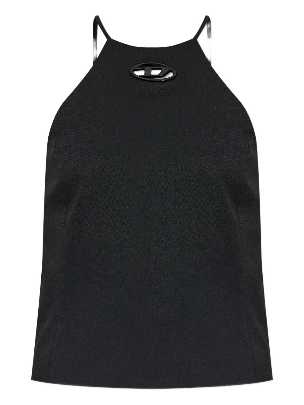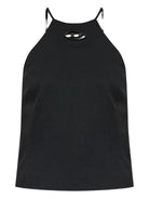 Elevate your everyday wardrobe with the T-ELMA Top from Diesel. This sleek black ribbed tank features a modern high neckline with a subtle cutout detail and delicate straps that add an edgy, contemporary touch to a classic silhouette.