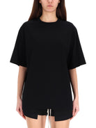Elevate your everyday wardrobe with the Temple Brad T from Rick Owens, a masterclass in contemporary minimalism. This oversized black t-shirt features a classic crew neckline and short sleeves, offering an effortlessly cool silhouette that embodies the designer's signature avant-garde aesthetic.