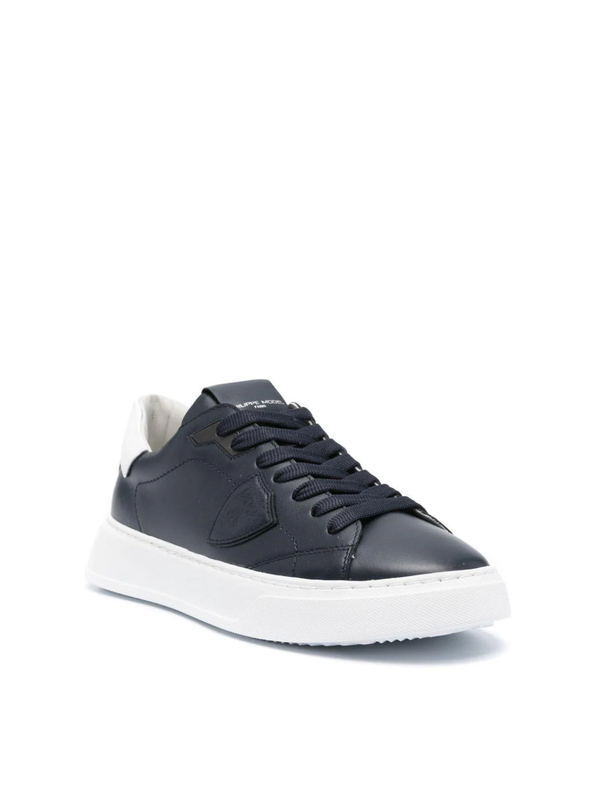 PHILIPPE MODEL TEMPLE LOW SNEAKERS BLEU SNEAKERS LOGO RUBBER SOLE LEATHER MADE IN ITALY