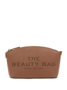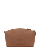 BROWN LEATHER PEBBLED TEXTURE TOP ZIP FASTENING DETACHABLE WRIST STRAP LOGO PRINT TO THE FRONT MAIN COMPARTMENT INTERNAL LOGO PATCH