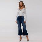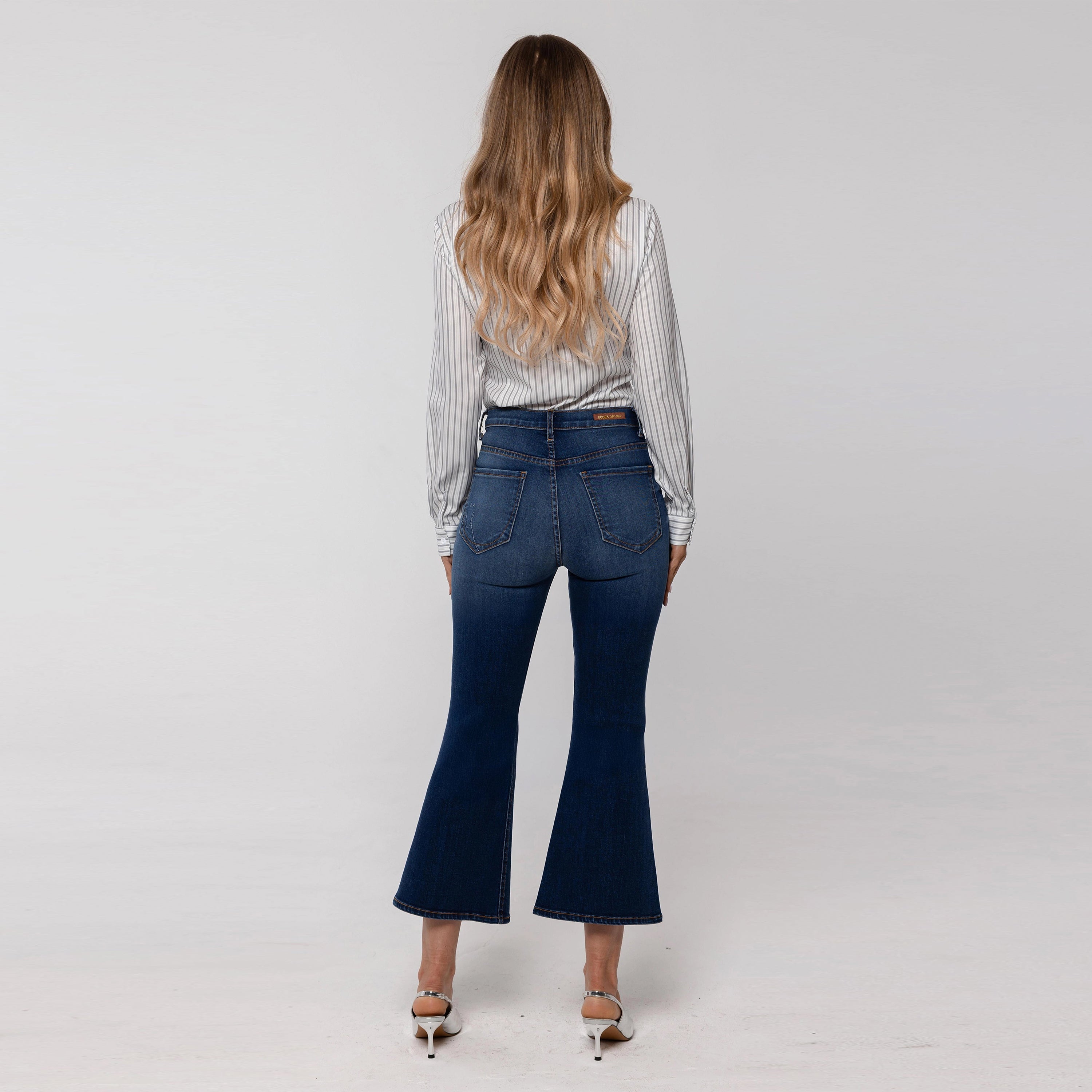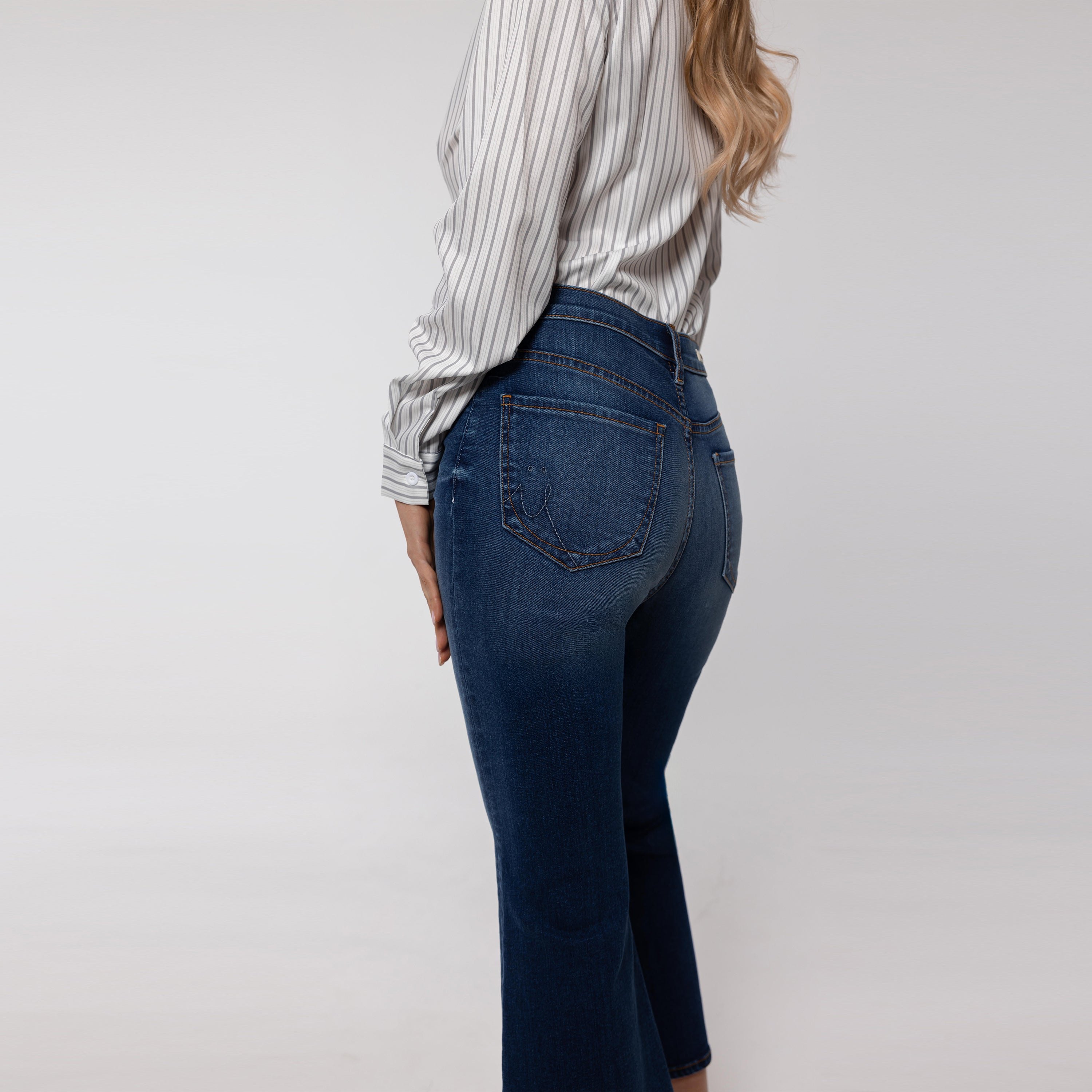 The Chloe Capri—our first-ever capri fit— crafted from the softest denim with just the right amount of stretch for all-day comfort. Designed to form-fit at the waist and accentuated by its statement capri flare, the Chloe is the perfect piece to transform any outfit into an unforgettable look. Available in a captivating ‘Tanzanite Blue’ denim as well as sleek Onyx vegan leather, this capri effortlessly transitions from day to night, offering versatile, refined style with every wear. A true statement piece that blends luxury and comfort seamlessly.