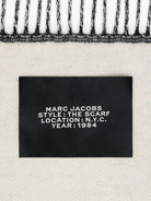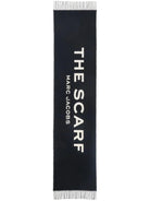 MARC JACOBS THE SCARF BLACK BLACKWHITE WOOL BLEND KNITTED DESIGN JACQUARD LOGO PATTERN APPLIQUÉ LOGO FRINGED EDGE WRAPAROUND STYLE WOOLACRYLIC SCARVES ACCESSORIES WOMEN