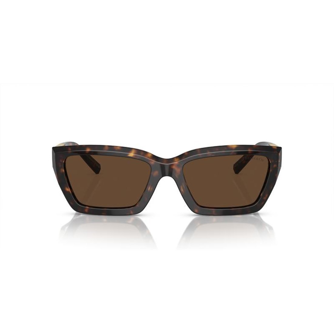 Elevate your eyewear collection with these stunning TIFFANY & CO TF4213 sunglasses featuring a sophisticated tortoiseshell frame and warm light brown lenses. The square silhouette is beautifully accented with signature gold-tone chain link detailing along the temples, adding an unmistakable touch of luxury to this iconic design.