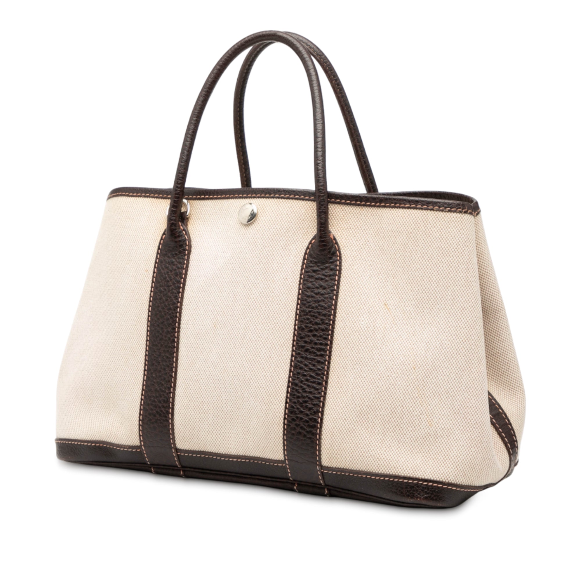 The Hermès Garden Party 30 is an iconic tote that effortlessly combines practicality with timeless elegance. Crafted from durable toile canvas with luxurious Negonda leather trim, this bag features rolled leather handles and a secure top clasp closure.