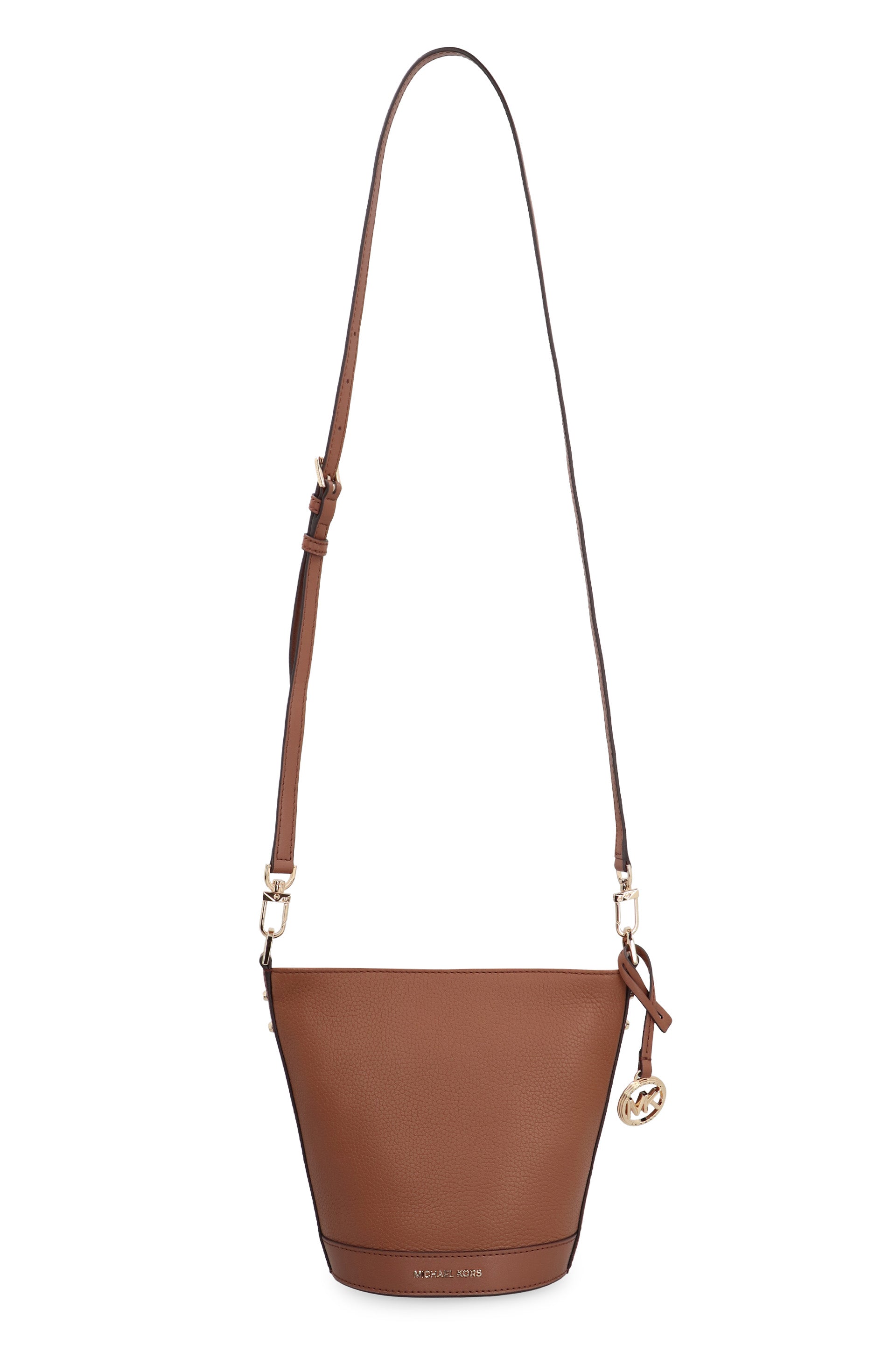 The versatile design includes both a removable leather handle and an adjustable, removable shoulder strap, allowing you to carry it your way—whether as a chic handbag or a comfortable shoulder bag. Gold-tone metal hardware and a removable logo charm add signature Michael Kors elegance, while the jacquard fabric lining with logo detailing provides a refined finishing touch.
