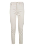 Crafted in a versatile cream tone, these ankle-length jeans are perfect for transitioning from casual weekend outings to polished office looks. Style them with a tucked-in blouse and heels for a sophisticated ensemble, or pair with sneakers and a relaxed tee for effortless off-duty chic.