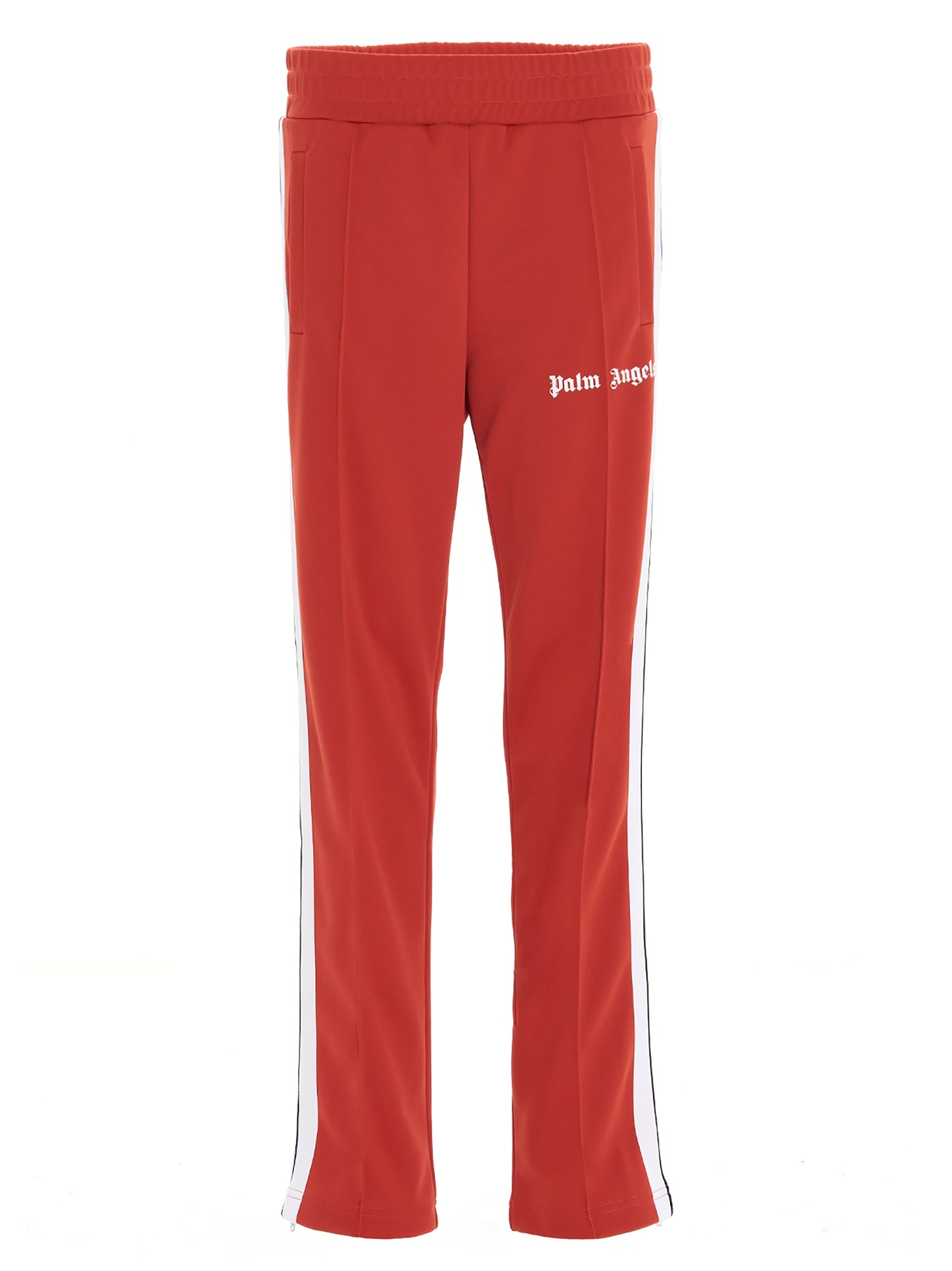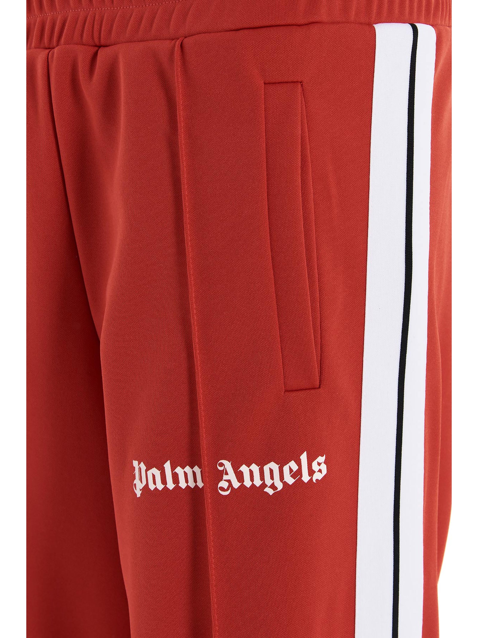 Elevate your off-duty wardrobe with these 'Track logo' joggers from Palm Angels. Crafted in premium tech fabric, these athletic-inspired joggers feature contrasting white side bands that create a sporty, retro aesthetic. The elastic waistband ensures a comfortable fit, while the signature logo print adds an unmistakable streetwear edge. Perfect for the gym, casual outings, or relaxed weekend wear, these joggers seamlessly blend performance functionality with contemporary street style. Style them with your favorite sneakers and a hoodie for an effortlessly cool look.