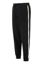 SPORTY BLACK TROUSERS WITH A MODERN CUT, MADE OF A SOFT AND LIGHTWEIGHT FABRIC. THEY FEATURE AN ELASTICIZED WAIST FOR A COMFORTABLE FIT, TWO SIDE POCKETS, AND A PRACTICAL CUFF AT THE ANKLES. IDEAL FOR SPORTS ACTIVITIES, BUT ALSO FOR A CASUAL LOOK. EASY TO PAIR WITH DIFFERENT TYPES OF CLOTHING. PERFECT FOR EVERY SEASON.