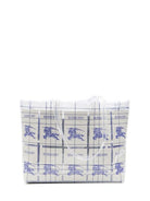 CHALK WHITE/ELECTRIC BLUE TRANSPARENT DESIGN LOGO TAG CONTRAST STITCHING CONCEALED MAGNETIC FASTENING TWO FLAT SHOULDER STRAPS TWO FLAT TOP HANDLES WOOL-BLEND LINING