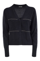 ESSENTIAL LINES AND LIGHT FABRIC DEFINE THIS CARDIGAN MADE OF VIRGIN WOOL, SILK AND CASHMERE YARN. THE WORKMANSHIP ENHANCES ITS ELEGANCE, WHILE THE RIBBED TRIM AND THE ICONIC PUNTO LUCE TESTIFY TO THE CAREFUL ATTENTION TO DETAIL. WITH LONG SLEEVES AND A REGULAR FIT, IT OFFERS OPTIMAL COMFORT AND IS PERFECT FOR COMPLETING A VARIETY OF LOOKS. IDEAL FOR THE SPRING SEASON OR COOL SUMMER EVENINGS, THIS CARDIGAN IS A CLASSIC THAT EMBODIES THE ESSENCE OF DISCREET AND TIMELESS LUXURY. - V-NECKLINE - COVERED BUTTON CLOSURE - REGULAR FIT DESIGNER ID: S99612F12I9018 I61