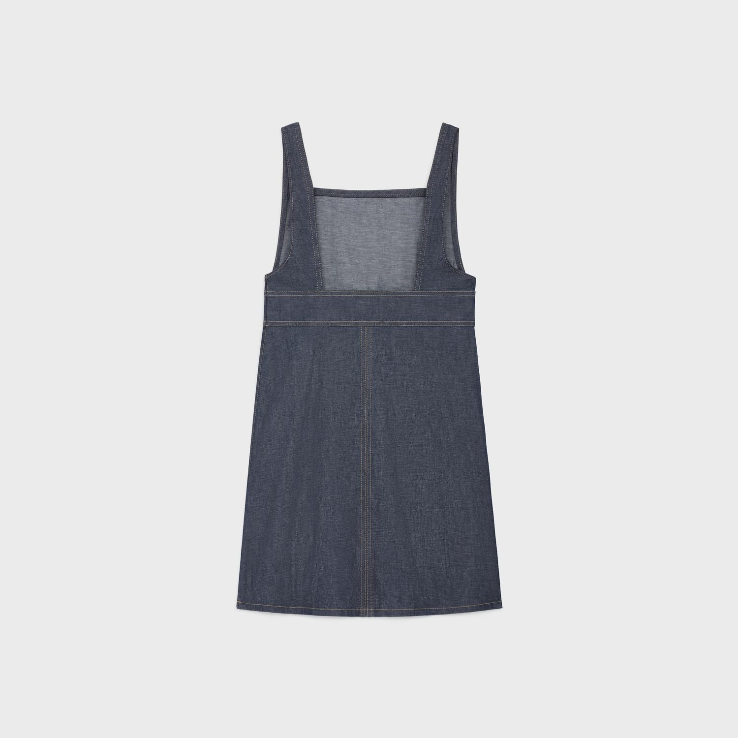 Elevate your casual wardrobe with this stunning Triomphe Denim Mini Dress from Celine. Crafted from premium cotton denim, this sleeveless mini dress features a chic square neckline and functional patch pockets for a utilitarian-inspired aesthetic.