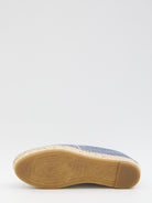 LES ESPADRILLES IN BLUE AND BEIGE STRIPED FABRIC. FEATURING ALMOND TOE, EMBROIDERED TRIOMPHE LOGO, HAND-STITCHED UPPER TO THE SOLE, AUTHENTIC JUTE INSOLE WITH PADDED LEATHER INSERT. SLIP-ON STYLE. DUSTBAG INCLUDED.