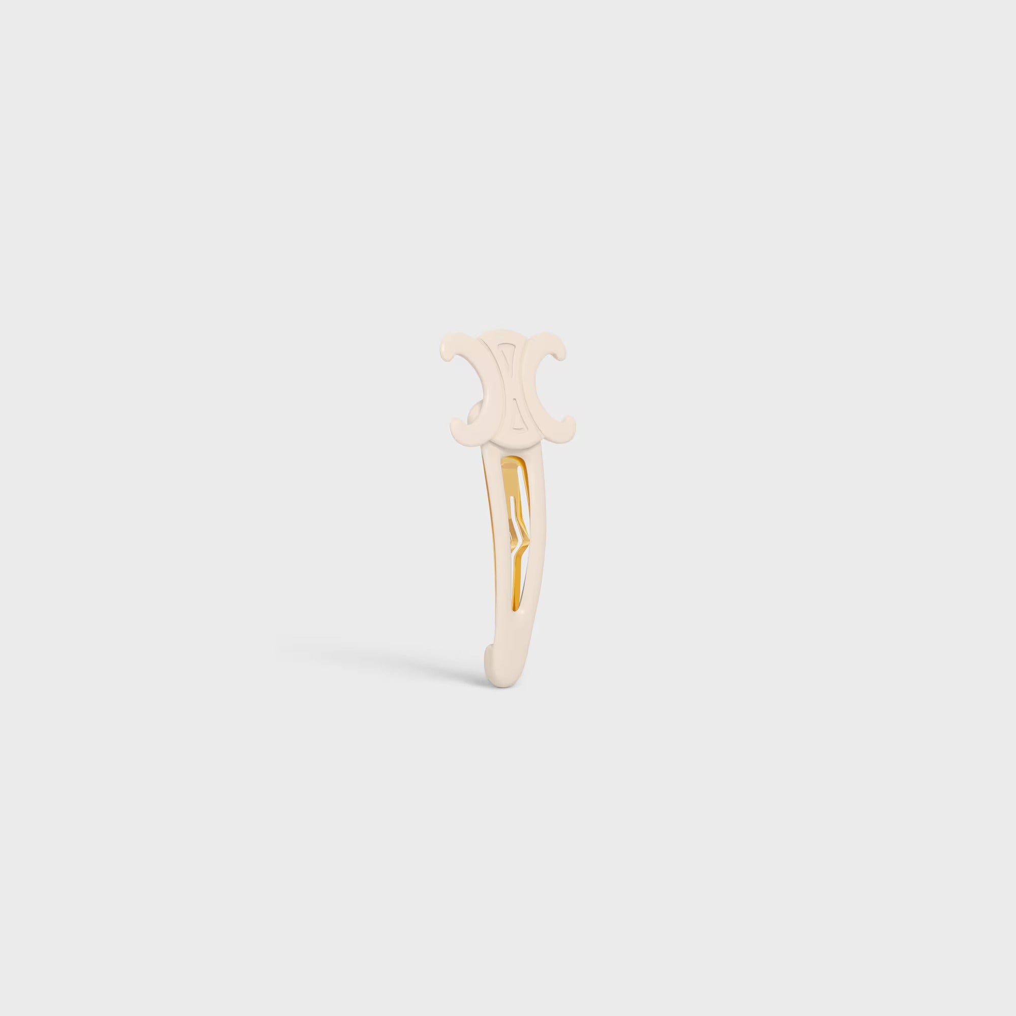 Crafted with meticulous attention to detail, this elegant hair clip features Celine's signature Triomphe logo in a gleaming gold-tone finish, adding a touch of Parisian sophistication to any look.