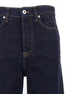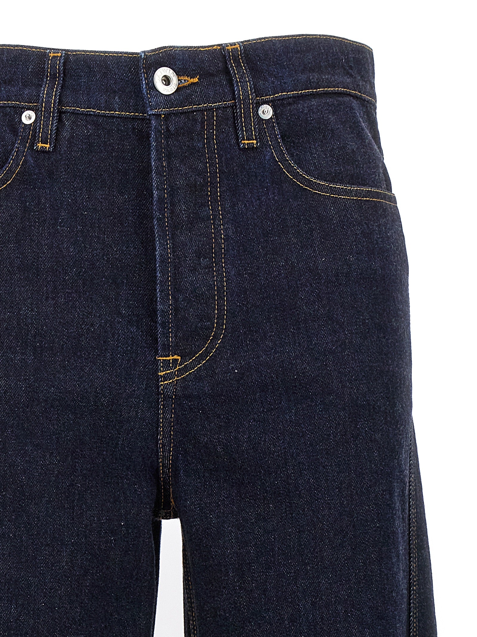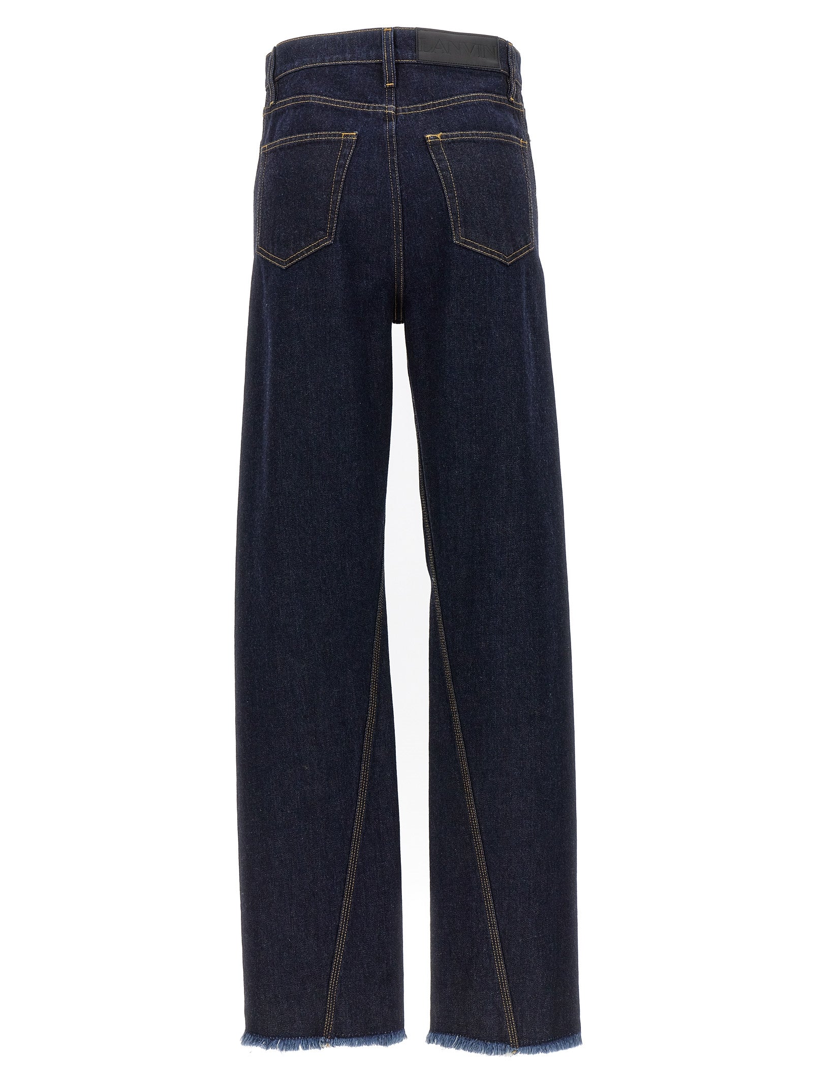 Elevate your denim collection with these sophisticated Twisted jeans from Lanvin. Crafted from premium cotton denim in a rich dark wash, these jeans feature a modern wide-leg silhouette with a unique twisted seam detail that adds architectural interest to a classic staple.