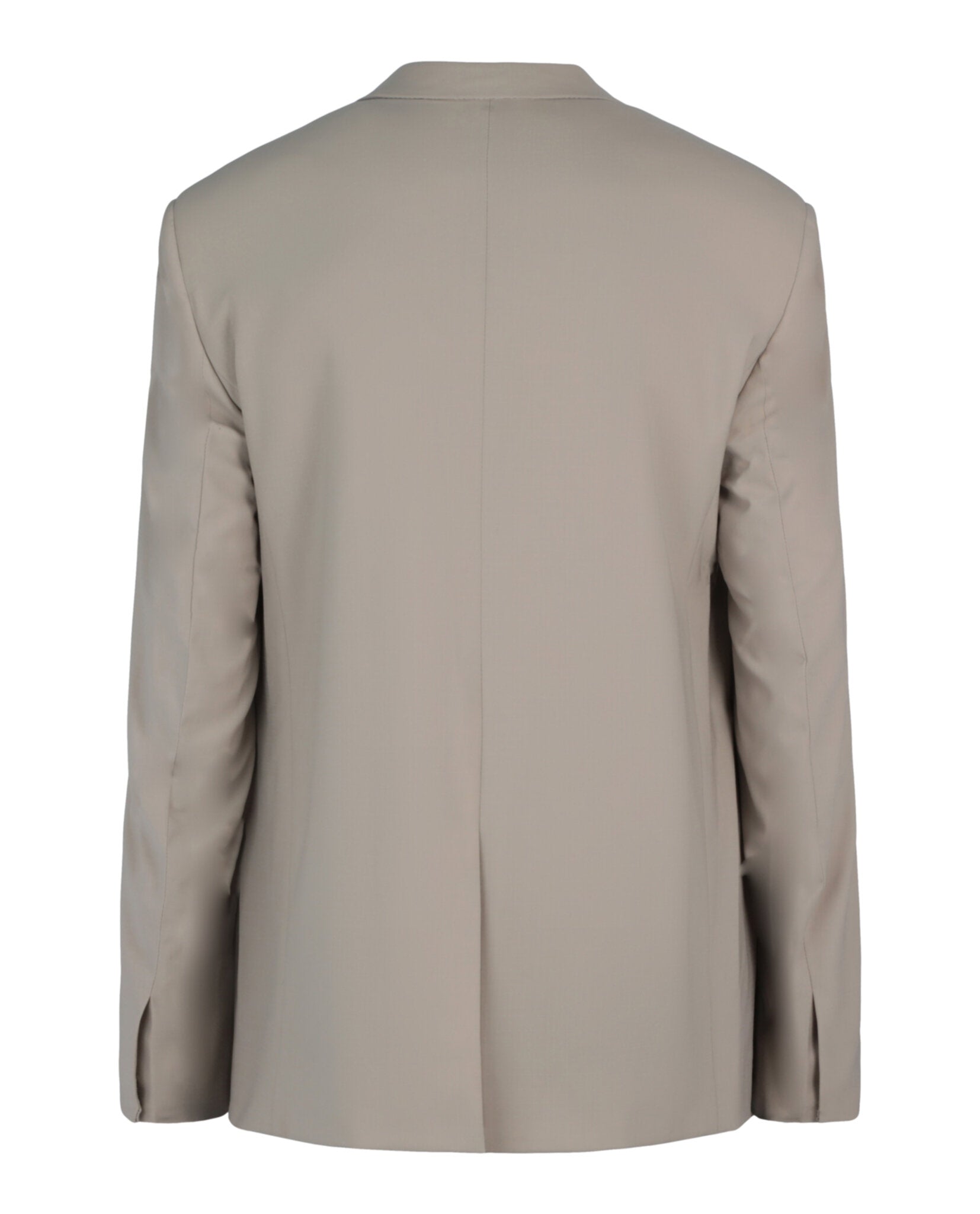 The front concealed button closure creates a sleek, streamlined look, while two front welt pockets and two interior welt pockets provide both style and functionality. The neutral beige tone makes this piece incredibly versatile—layer it over tailored trousers for the office, pair it with denim for a polished casual look, or style it as a statement piece for evening occasions.