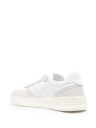 WHITE/LIGHT GREY CALF LEATHER/CALF SUEDE TWO-TONE DESIGN LOGO PATCH TO THE SIDE LOGO-PRINT TONGUE PERFORATED TOEBOX FRONT LACE-UP FASTENING BRANDED FOOTBED ROUND TOE FLAT RUBBER SOLE
