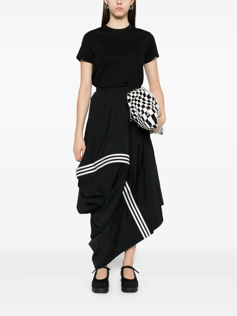 Y-3 ASYMMETRIC SKIRT BLACK BLACK HIDDEN SIDE ZIP CLOSURE STRIPE DETAILS DRAPED FEATURES ASYMMETRIC HEM POLYAMIDECOTTON ASYMMETRIC AND DRAPED SKIRTS SKIRTS CLOTHING WOMEN