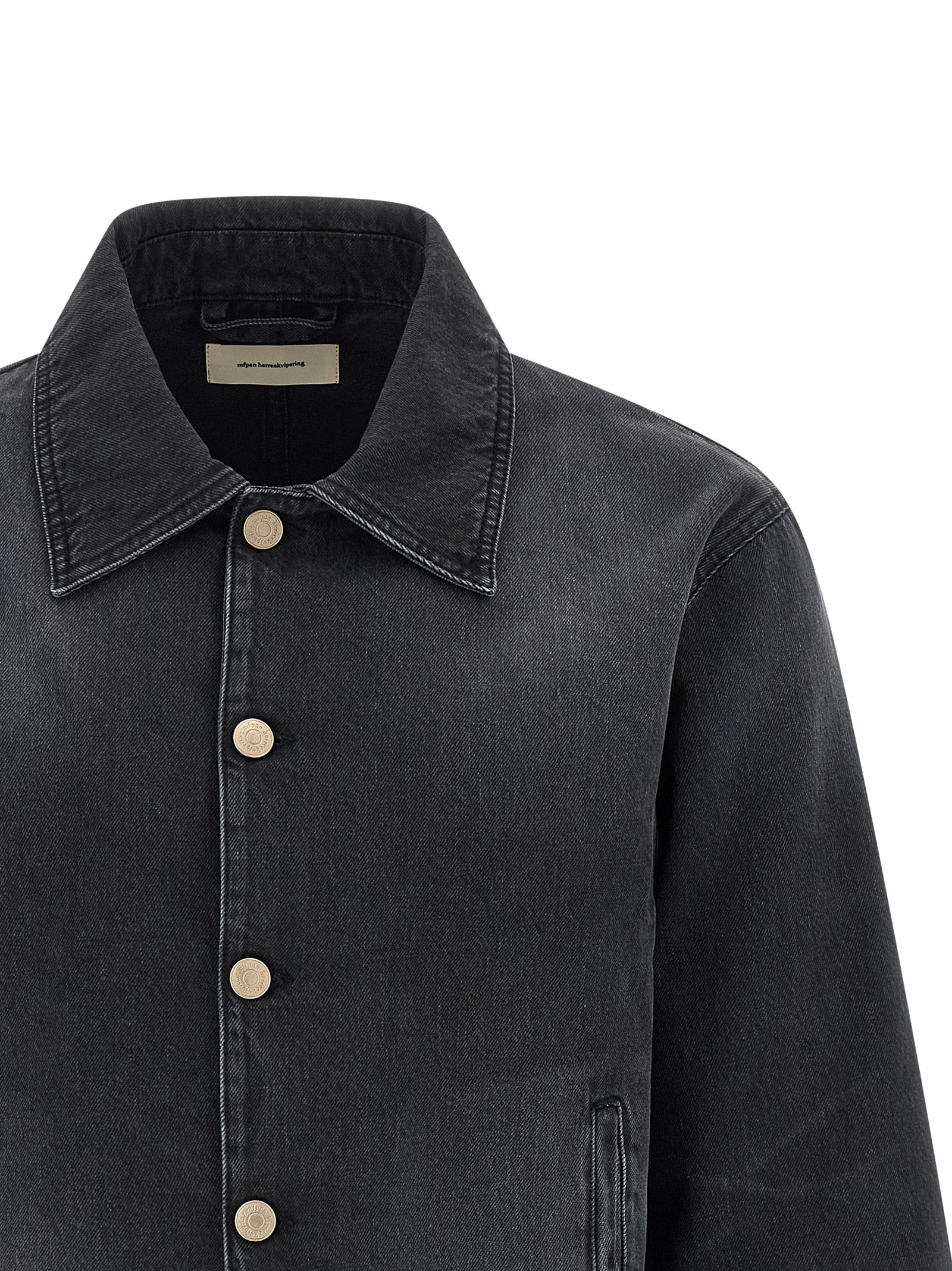 'Union' vintage-effect cotton denim jacket with dry hand, shirt collar, front button closure, pockets, long sleeves, unlined.