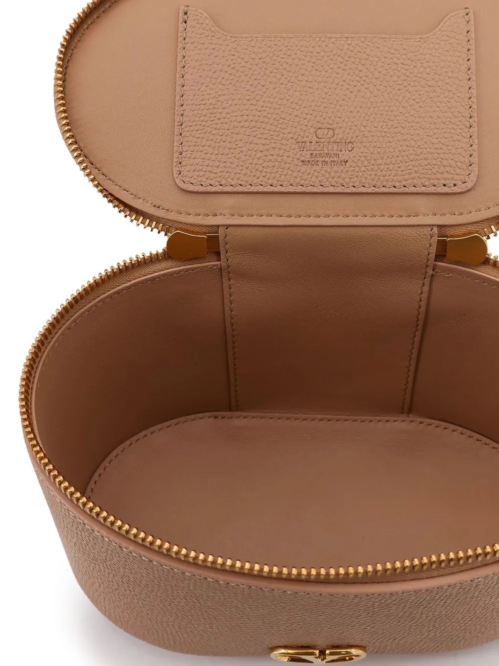 Elevate your accessory collection with this exquisite Valentino Vanity Case, a perfect blend of sophistication and functionality. Crafted in luxurious beige leather with gleaming gold hardware and the iconic V logo, this structured piece features a convenient top handle and detachable shoulder strap for versatile carrying options.
